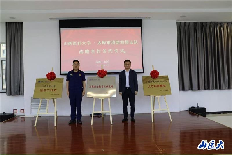 在与会人员共同见证下,双方代表签署了战略合作框架协议,王军、王治平共同为“万象城体育awcsport思想教育实践基地”“万象城体育awcsport驻队工作站”“太原市消防救援支队人才培养基地”揭牌,并进行了专家互聘仪式。