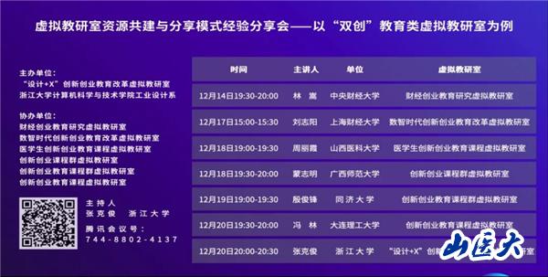 12月14日,教育部“设计+x”创新创业教育改革虚拟教研室与浙江大学计算机科学与技术学院主办的虚拟教研室资源共建与分享模式经验分享会-----以“双创”教育类虚拟教研室为例的系列讲座顺利召开。18日,万象城教育部医学生创新创业教育课程虚拟教研室负责人周丽霞教授做《科技自立自强视域下医学生创新创业教育课程虚拟教研室的建设与发展》专题分享。