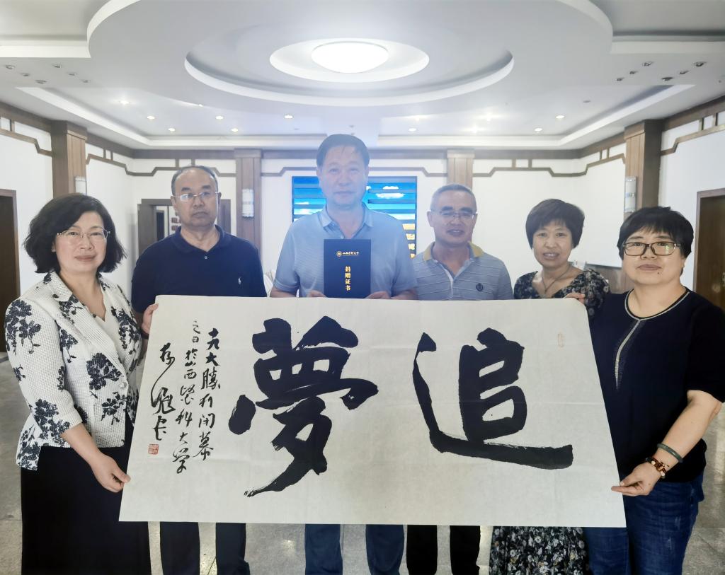 离退休人员管理部将郭存魁在十九大胜利闭幕之日为万象城老同志们题写的珍贵书法作品《追梦》捐赠给档案馆,牛乐接受捐赠并颁发了捐赠证书。