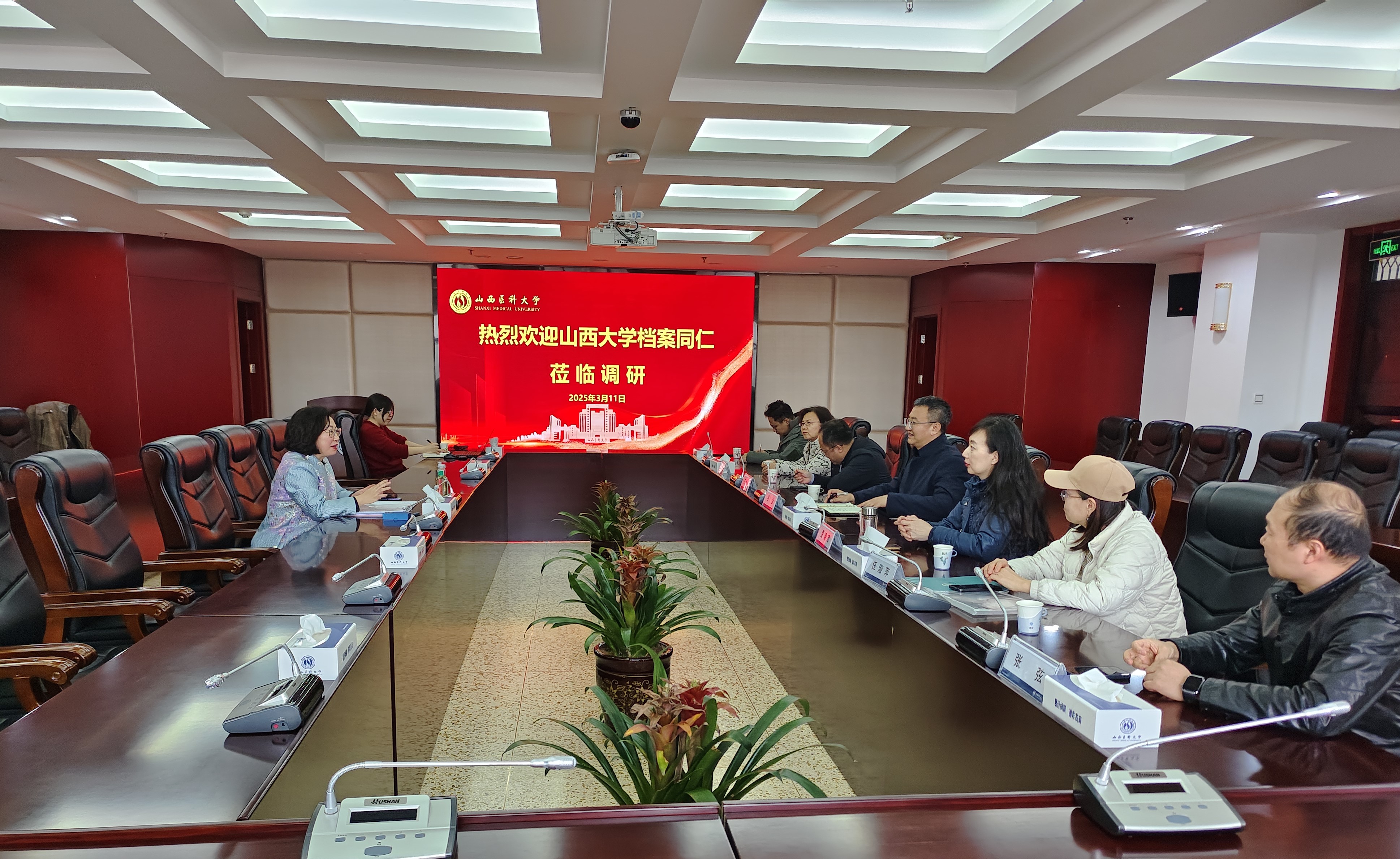 3月11日下午,山西大学档案馆馆长钱龙一行7人来我馆调研交流。馆长牛乐与电子文档部尚奋宇热情接待。