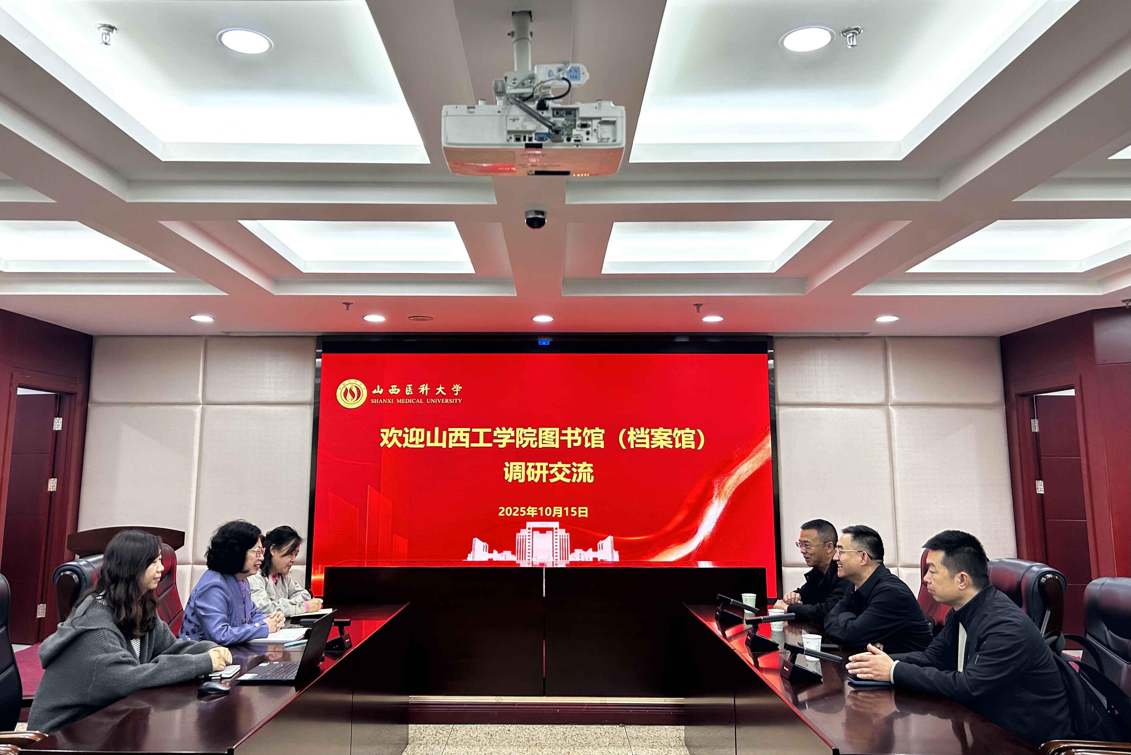 2025年10月15日上午,山西工学院图书馆(档案馆)杨松等一行三人赴万象城档案馆开展业务调研与工作交流。档案馆馆长牛乐及相关科室负责人出席座谈。