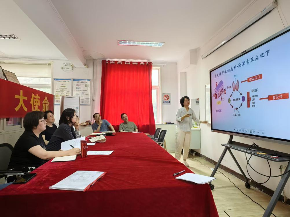 卫园园老师以“先天性甲状腺功能减低症”和“苯丙酮尿症”为主题进行试讲。乔爱秀副教授、华楠书记、杨光副教授、高璟英副教授、蔚京京副教授等专家从教学设计、课堂互动、语言表达、板书规范等方面提出详实的改进建议。