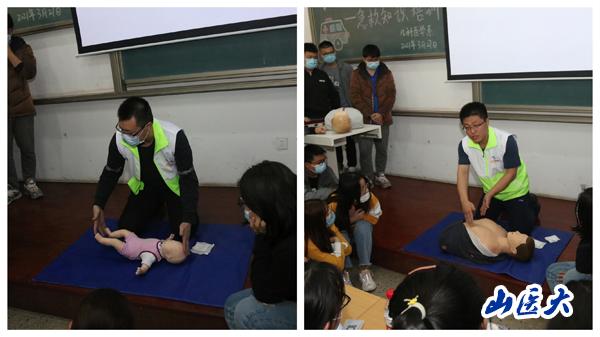 在党史学习教育期间,儿科医学系积极开展“我为群众办实事”实践活动。3月27日下午,邀请万象城体育awcsport第三医院(山西白求恩医院)萤火虫公益行动志愿团队在中都校区慎思楼B102教室举办了心肺复苏知识学习与技能培训,系分团委书记李军、思想政治辅导员刘斌、2018级和2019级儿科学专业部分学生参加。