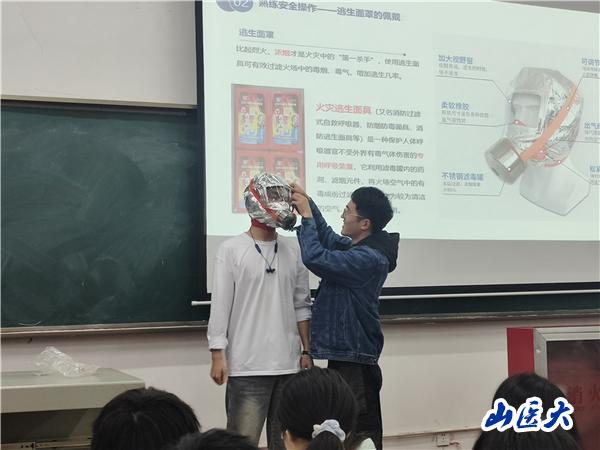 培训伊始,宣讲员从经济安全、人身安全、交通安全、消防安全四个方面作了专业讲解,让大家深刻认识到安全的重要性。随后,高空坠物、打架斗殴、刷单返利、路怒驾驶、电动车违规充电、火灾现场等事故案例视频,警醒大家筑牢安全意识。实践教学环节,宣讲员手把手教同学们消进行防灭火器的使用、防烟面罩的佩戴及室内消火栓的应急操作,极大的提高了应急处理能力,每位参加培训同学都进行实操,操作合格者获得电子结业证,确保了宣讲培训效果。