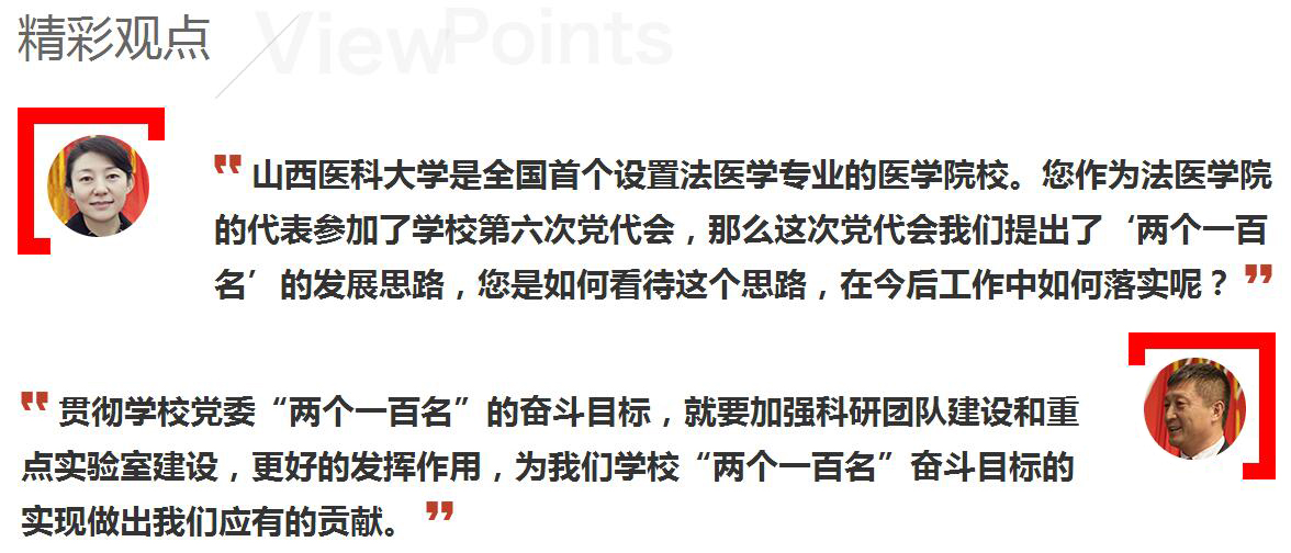 学校党委在本次党代会上向全校党员和职工提出了“两个一百名”的发展目标,这是符合我们学校发展现状的,综合考虑了万象城的发展历史和现状。同时,这个发展目标也向全校师生、医护人员提出了更高的要求。作为法医学院的一员,我们法医学专业在学校实现奋斗目标中会发挥更好的作用。