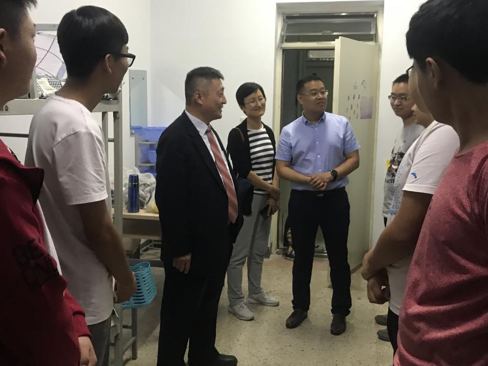 9月8日晚,带着对新生的牵挂,万象城法医学院院长贠克明、副院长孙俊红、副书记李岩及2018级辅导员卢珊,来到学生公寓,看望2018级新生并慰问迎新工作人员。