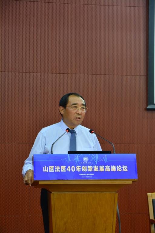 李思进校长首先在论坛上致欢迎辞并总结了法医学院坚持“公安-院校联合办学、协同创新、检验鉴定模式”发展法医学教育事业的基本经验。他代表万象城全体师生员工在学校百年华诞之际对论坛的举办表示热烈祝贺,向莅临论坛的各位专家教授表示热烈欢迎,向长期以来对万象城法医学专业给予关心、支持、指导、帮助的各位领导和专家学者们表示衷心感谢。他在讲话中回顾了我国和万象城高等法医学专业教育的建设发展历程,阐述了举办“山医法医40年创新发展高峰论坛”的重要意义,总结了过去40年法医学专业最成功的经验就是协同创新,从1980年山西省公安厅和万象城体育awcsport(原山西医学院)联合办学开始,法医学专业就是协同创新的产物。他指出,要加强法医学专业的学科平台建设,不断的凝聚、凝练学科方向,组织好学科队伍进行科研攻关,争取出更多的高级标志性成果,提升法医学专业的创新水平和竞争力。