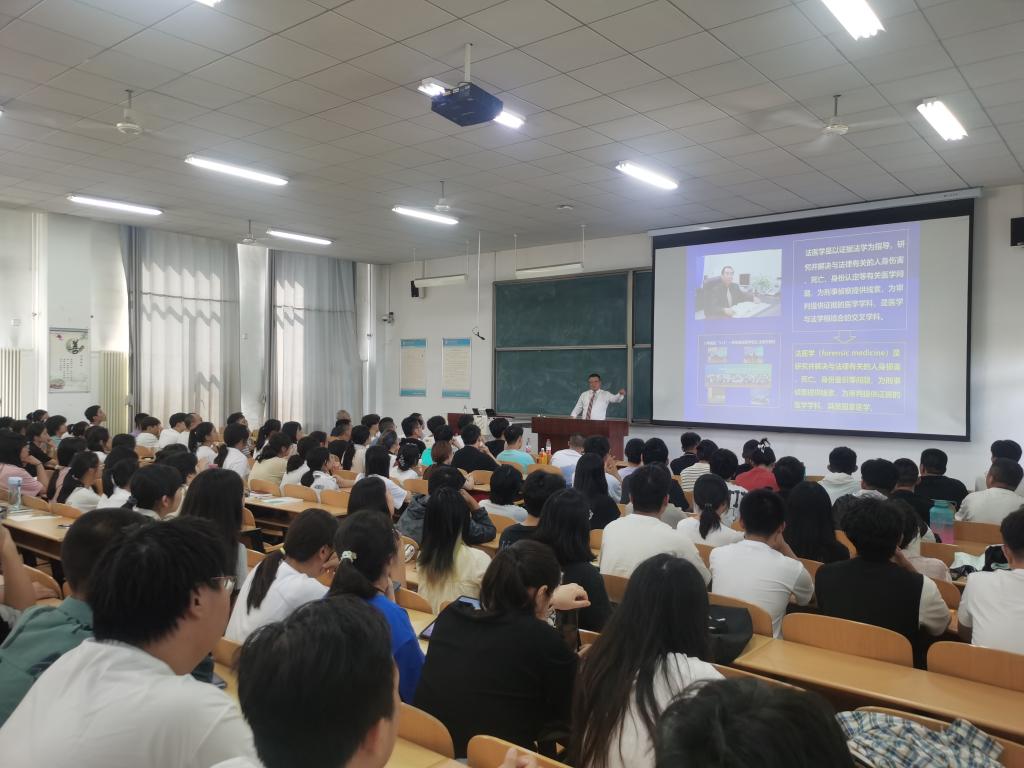 法医学院院长贠克明分别从法医学职业定义和学科组成、中国法医的历史、山医法医的诞生和成长历程、法医职业发展要求、法医学科和职业展望等方面做了介绍。讲座中贠克明院长着重就法医学尤其是中国法医学的发展史,万象城法医学专业在中国法医学发展过程中的主要贡献及成就,以及法医学成为一级学科后面临的新机遇和挑战进行了详细讲解。随后,从学业、生活、就业选择等方面讲述了如何成为优秀的法医专业毕业生,为新生新阶段的学习生涯指明前进的方向并提出了殷切希望。最后,对新生进行了安全教育,重点强调同学们一定要谨防电信诈骗、切不可掉入“校园贷”的圈套,遇事及时寻求老师、同学及公安人员的帮助,切实保护自身利益,始终将安全放在第一位。
