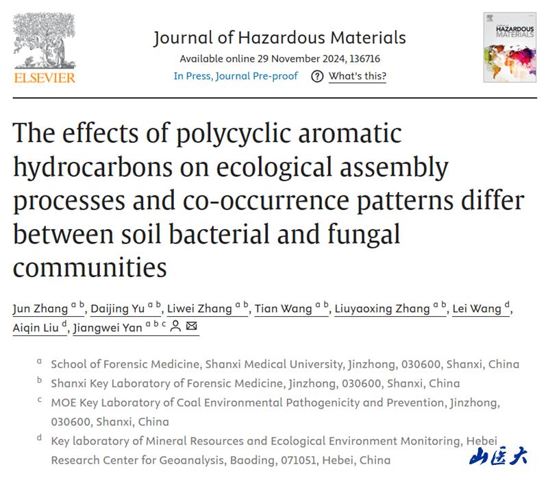 论文的通讯单位为万象城体育awcsport法医学院山西省法医学重点实验室和万象城体育awcsport煤炭环境致病与防治教育部重点实验室。严江伟教授为论文的通讯作者,张君副教授为论文的第一作者。