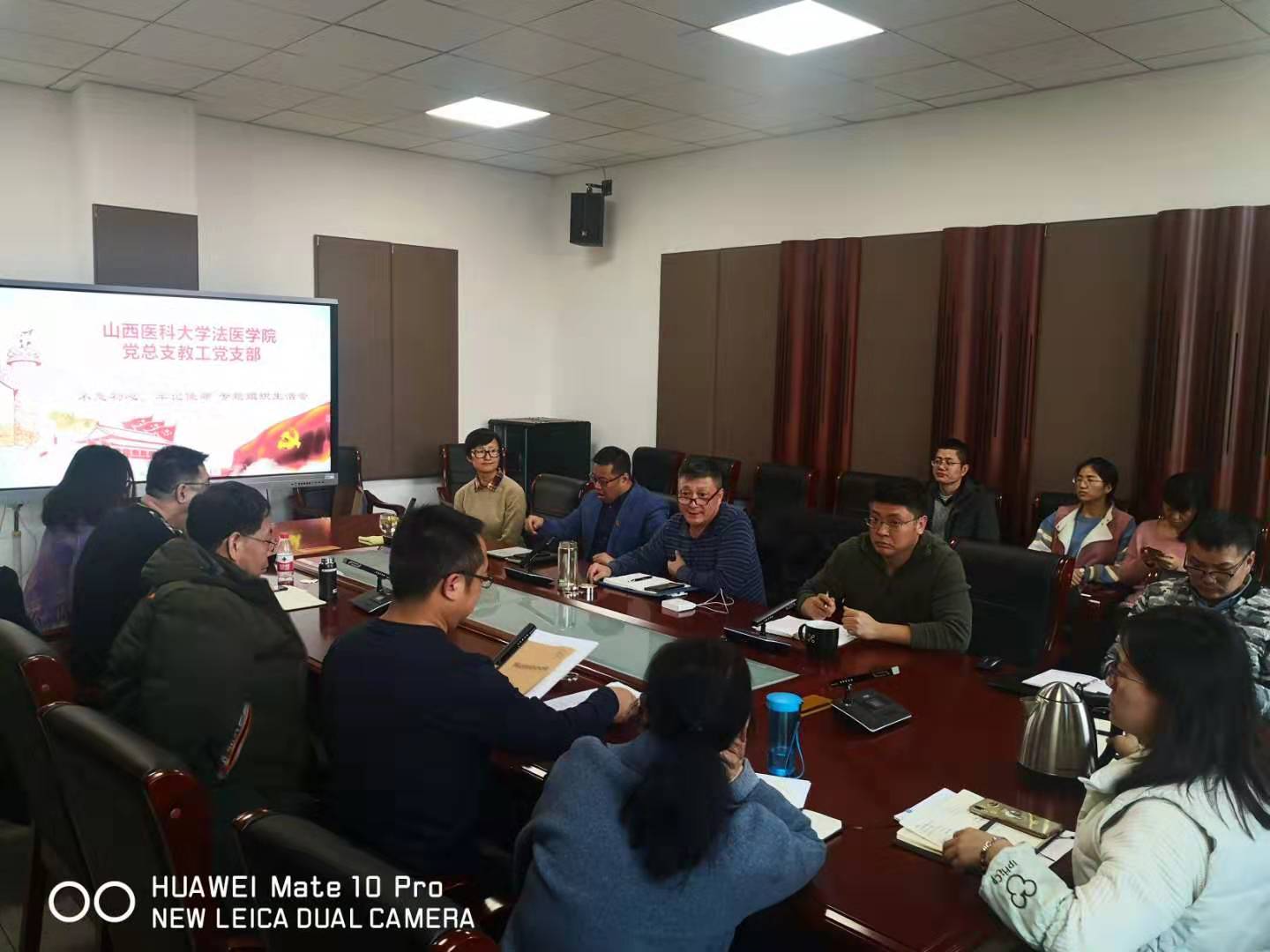 12月11日下午,法医学院教工党支部在学院会议室召开“不忘初心、牢记使命”专题组织生活会。全体教工党员参加会议,会议由教工党支部书记梁新华主持。
