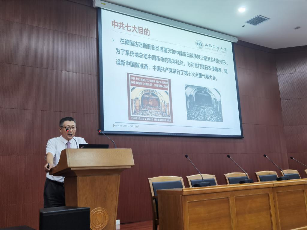 本次党史学习教育的主题为“学党史、讲院史、聚人心、谋发展”。贠克明老师从中国共产党第七次全国代表大会谈起,围绕中共七大的准备过程、目的、内容等,介绍了中共七大最重大的历史功绩是确定了党的政治路线,克服了党内的错误思想,从而使全党在马克思列宁主义、毛泽东思想的基础上达到了空前的团结,并确立毛泽东思想为党的指导思想。七大之后,全党同志团结一致,为推进中国革命的历史进程努力奋斗,终于在1949年取得了新民主主义革命的伟大历史胜利。随后,贠克明老师又介绍了毛泽东致七大闭幕词-《愚公移山》,他指出愚公移山精神的实质就是艰苦奋斗精神,这种精神,是一种百折不挠、顽强拼搏的坚韧斗志,一种自强不息、勇往直前的奋进状态,一种埋头苦干、勤勤恳恳的务实作风。他希望老师、同学们在日常工作学习中,也要弘扬愚公移山精神,并将这个品质一代代传承下去,为学校、学院、自身的发展做贡献