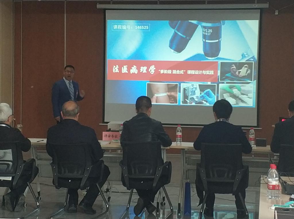 3月31日上午9:00,《首届全国高校教师教学创新大赛山西赛区现场评审》开幕式如期举行。精彩的开幕式后,孙俊红教授代表团队,进行了精彩的《法医病理学“多阶段、混合式”课程设计与实践》汇报。从教学目标与学情分析、创新理念与设计思路、创新方法与实施途径及教学成果与教学反思四个方面,深刻剖析了法医病理学多年来的课程理念及改革创新,获得现场评委一致肯定与嘉奖,为此次比赛画上圆满的句号。