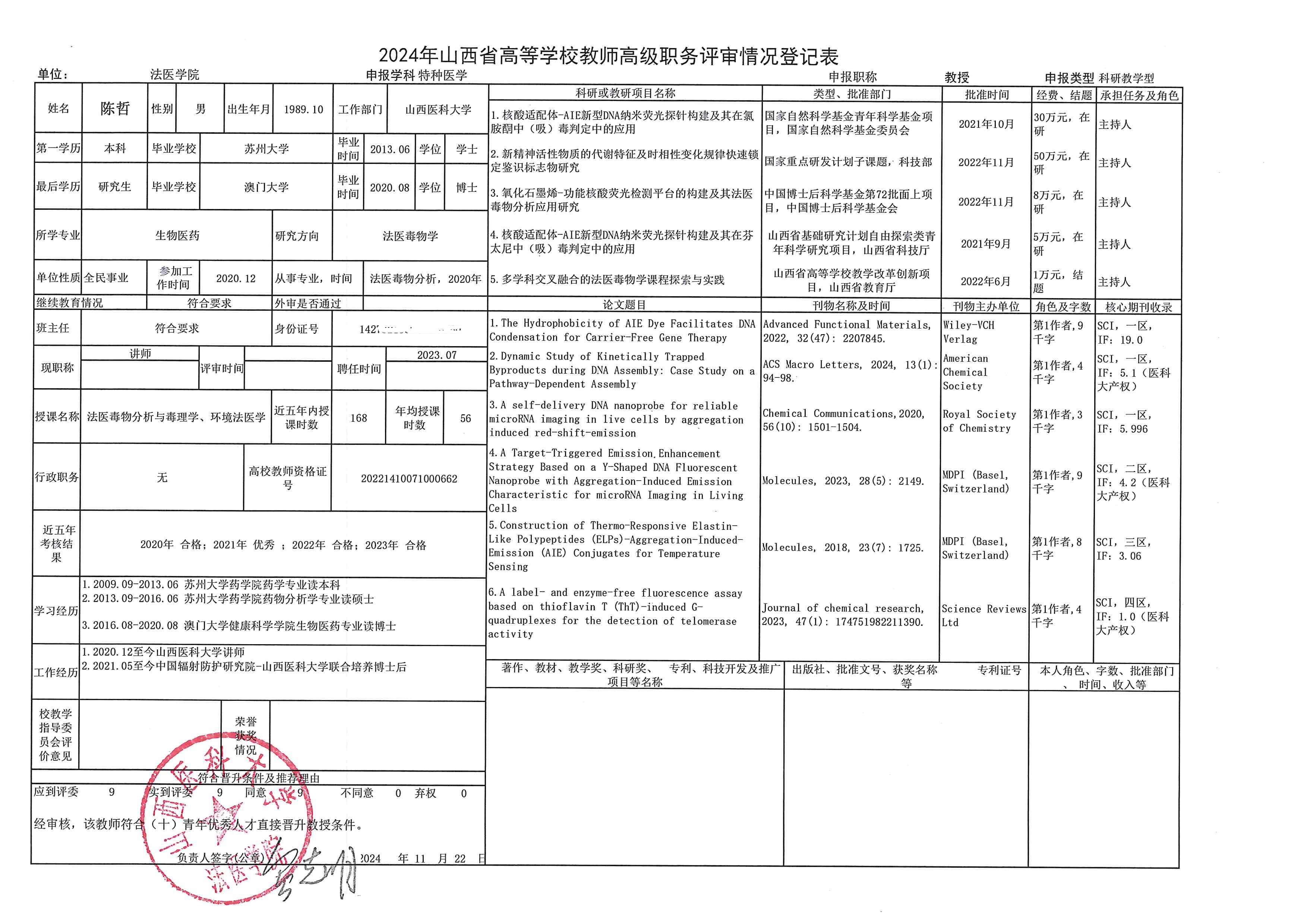2024年度法医学院职称申报公示