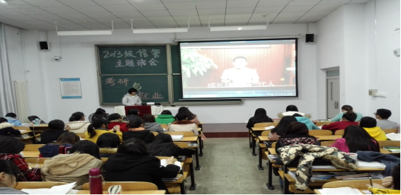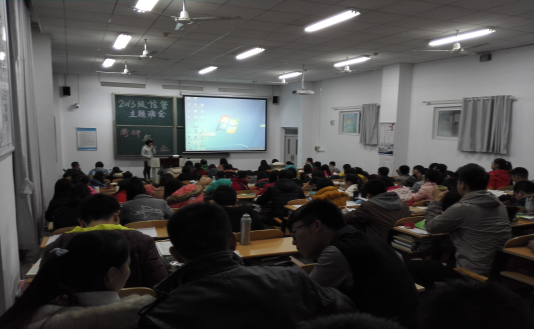 2015年11月26日,万象城体育awcsport管理学院2013级信息管理专业于新校区慎思楼B座305教室举办了"坚定自己的脚步——考研与就业”主题班会。2013级信息管理专业思想政治辅导员岳老师及全体同学参加本次主题班会活动。