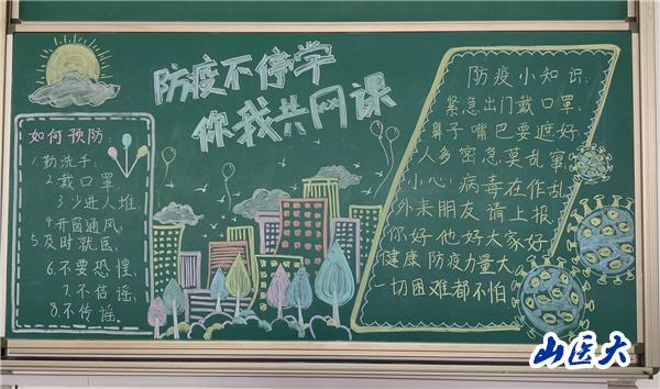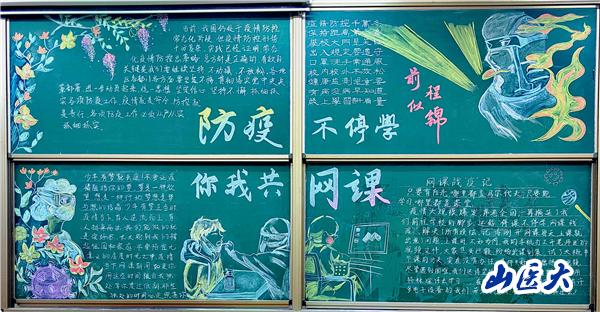 本次主题黑板报的展示,作为学院“同心战役,我们如此热爱山医”系列活动之一,旨在让同学们发挥自己的奇思妙想,通过在教室绘制主题黑板报,营造教室空课堂不空的氛围,凝聚人散心不散的力量,进而为封校枯燥的生活添加色彩,促进学生德智体美劳全面发展。