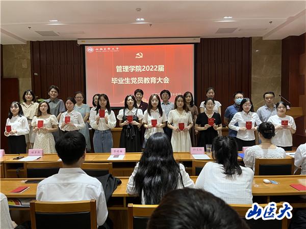 会上,李红梅以“不忘入党初心,争做时代先锋”为题,为毕业生党员上最后一堂党课,教育引导毕业生党员时刻牢记党员身份,践行党的宗旨,始终以党员的标准严格要求自己,坚定信念、志存高远,不忘初心、牢记使命,在担当中尽责,在奋斗中成长,将一代代山医人“求实精进 坚韧弘毅”的奋斗故事讲好,将一代代中国青年的“请党放心 强国有我”的使命责任担当好,将一代代共产党人“坚持真理、坚守理想,践行初心、担当使命,不怕牺牲、英勇斗争,对党忠诚、不负人民”伟大精神传承好,在今后的学习工作中用所学专业回答时代之问,在新时代的赛道上跑出青春最好成绩。