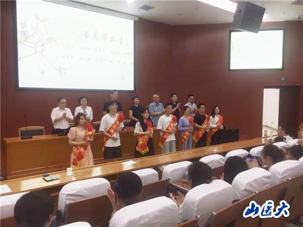 会上,院长于琦宣读了学院关于表彰2022届“最美毕业生”的决定。自2019年开展“最美毕业生”评选推介活动以来,学院累计评选出40名“最美毕业生”。他们或专业成绩优异,或科研创新成果突出,或积极开展贫困地区支教、疫情防控志愿,或投笔从戎保家卫国,或作为学生干部自觉服务学生,或作为学生党员充分发挥先锋模范作用,脚踏实地走好人生的每一步,躬身践行着“医理博精,德能高邃”校训,弘扬着“求实精进、坚韧弘毅”的山医精神,用优异的成绩、坚定的信念阐释了当代青年的使命担当。