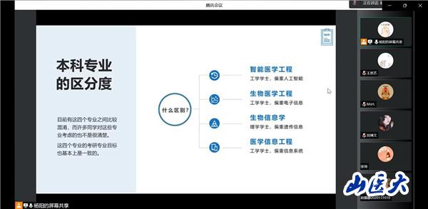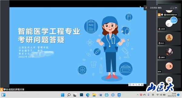 10月14日晚,管理学院学业辅导员杨阳老师为智能医学工程专业2020级开展考研答疑线上活动,返校学生与暂缓学生齐聚线上,共计30人参与。
