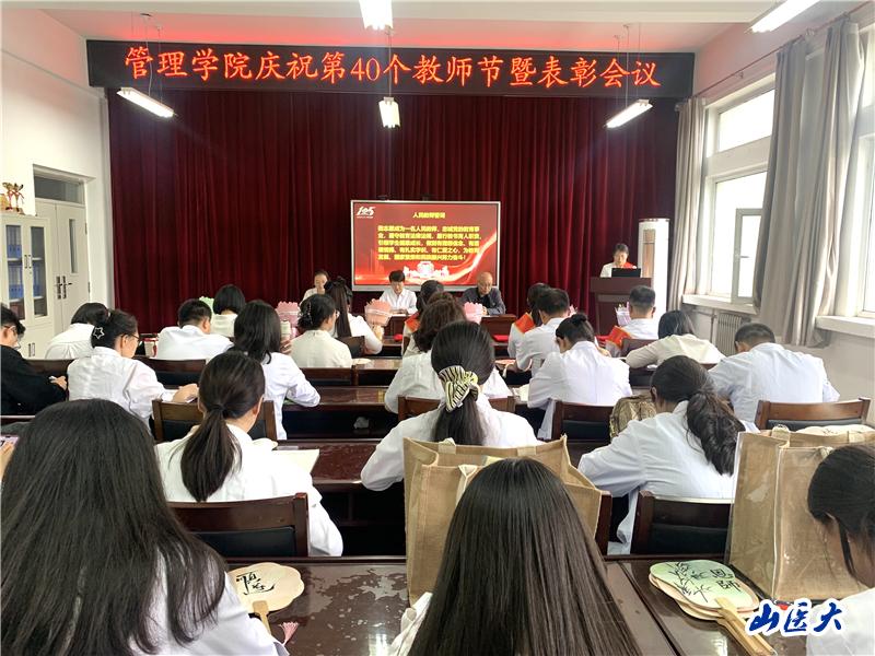 9月10日,管理学院举办庆祝第40个教师节暨表彰会。学院党委书记李红梅主持会议并讲话,学院党委副书记乔晓梅领学领誓教育家精神和《人民教师誓词》,副院长李建涛宣读表彰决定,学院全体教师和学生代表参加了会议。