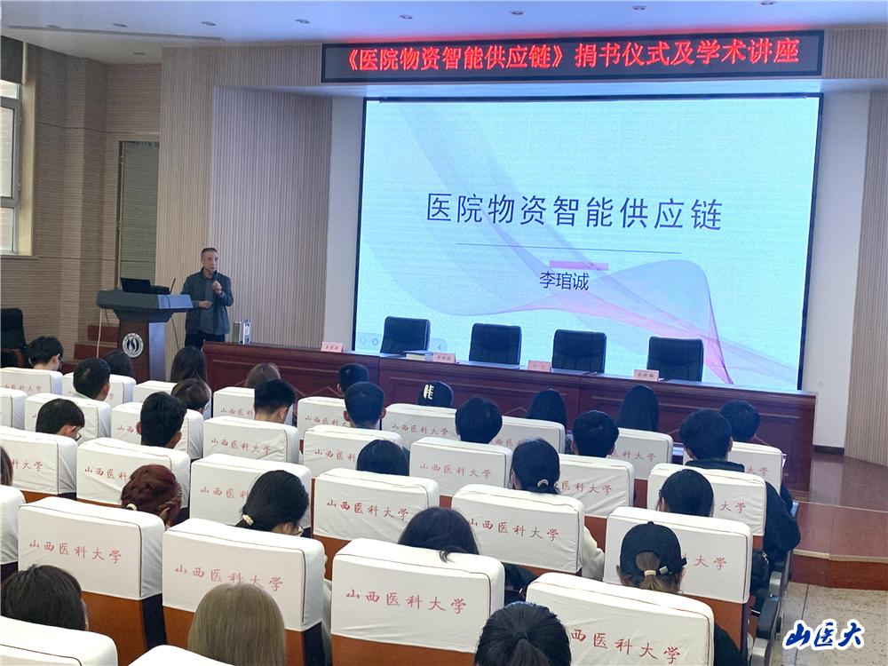 10月16日下午,管理学院在中都校区博学A一层报告厅举行了李琯诚校友《医院物资智能供应链》一书捐赠仪式及学术讲座。学校档案馆馆长牛乐,管理学院党委副书记乔晓梅、副院长李建涛,以及部分教师代表和2023 级、2024 级智能医学工程的全体学生参加了活动。