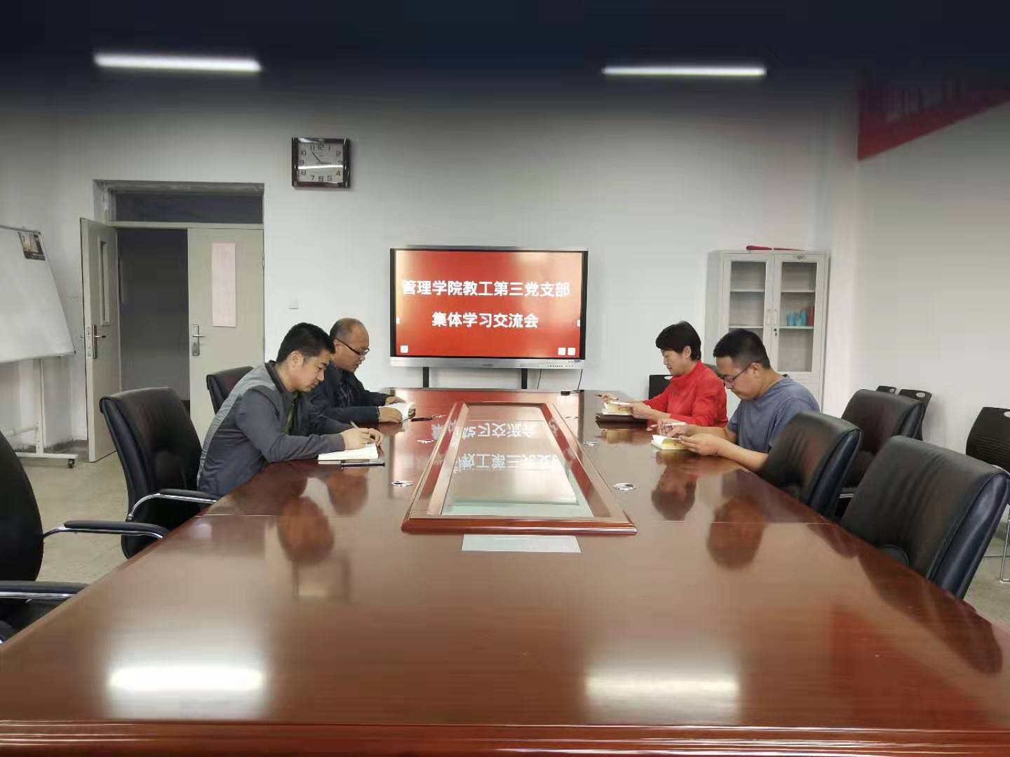 2019年9月29日下午,管理学院教工第三党支部在中都校区至善楼C座二层小会议室进行“不忘初心、牢记使命”集体学习交流活动暨找差距专题会议。教工第三党支部书记李建涛主持会议,李红梅,王轶,田步伟参加现场会议,闫凤茹、李菲、元瑾通过视频参加会议。