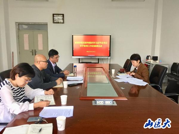 会上,与会人员集体学习习近平总书记关于教育的系列重要论述,副院长李建涛结合学习工作实际作了主题发言。