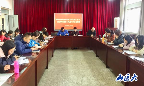 11月15日下午,管理学院党委理论学习中心组在学院会议室召开扩大会议,传达学习贯彻党的十九届六中全会精神。学院党政班子成员、全体教职工参加会议,学习会议由学院党委书记李红梅主持。