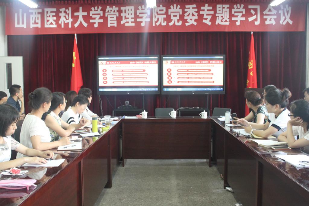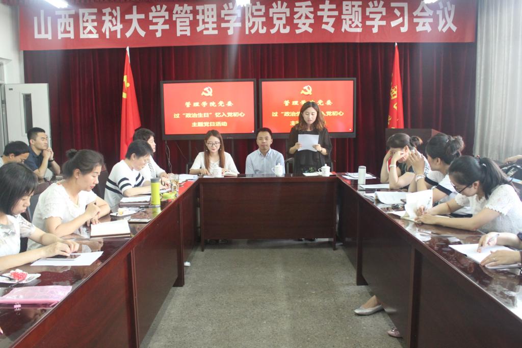 7月5日下午,管理学院党委在至善C305室召开全体教工党员会议,开展“过政治生日 忆入党初心”主题党日活动由此启动。此次主题党日活动是管理学院党委贯彻落实新形势下党内政治生活若干准则、严肃党内政治生活、健全组织生活制度的重要举措,也是推进“两学一做”学习教育常态化制度化,进一步增强党员的身份意识与责任意识,加强党员教育管理、强化党员党性修养的创新实践。
