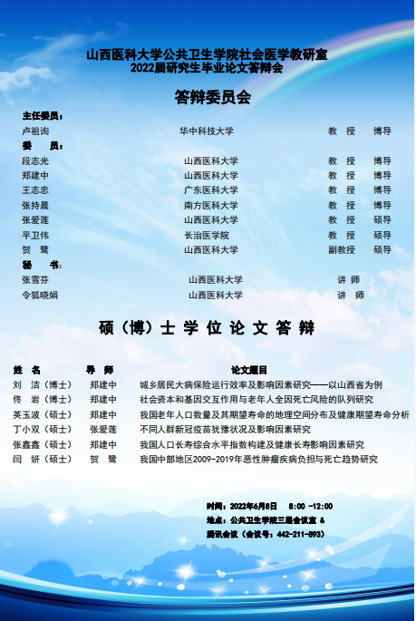 2022届公共卫生学院社会医学教研室研究生毕业论文答辩海报