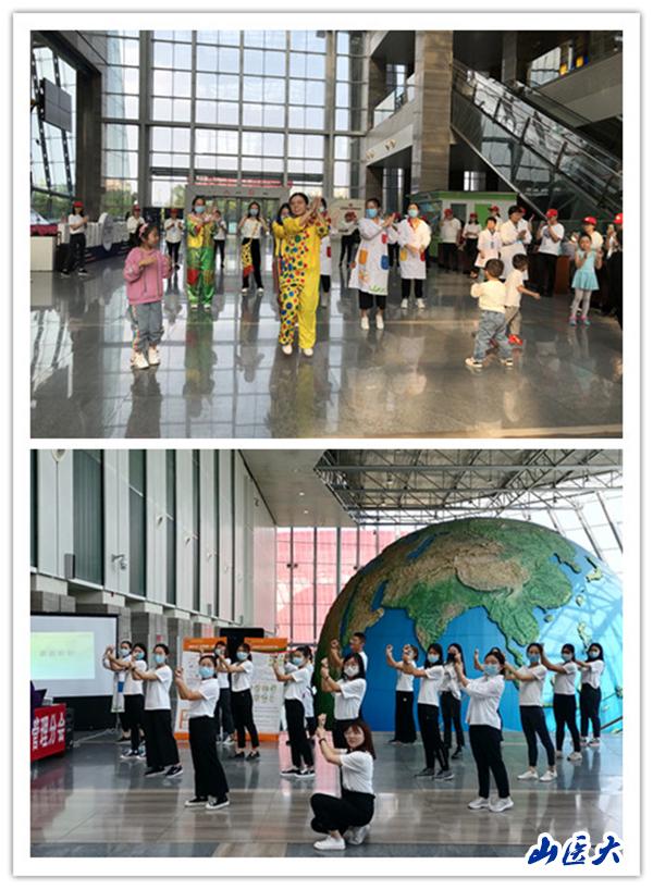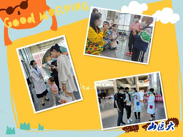 志愿者们分组通过发放宣传资料、讲解防疫知识、视频动画演示、现场示范等多种方式对正确洗手法、心肺复苏、呼吸道常见疾病预防等传播健康知识。在健康科普板块中,主讲者从咳嗽礼仪、七步洗手法、正确使用口罩以及居家防控措施四部分进行讲解演示。身着卡通服装的“小丑医生”志愿者们积极配合,以生动形象的“洗手舞”,青春靓丽的身影吸引众多参观者的目光,大家配合默契,现场感染力暴发,将丰富的专业知识,通过幽默风趣的台风、新奇轻松的形式,把健康知识表达得通俗易懂、趣味盎然,受到观众一致好评。