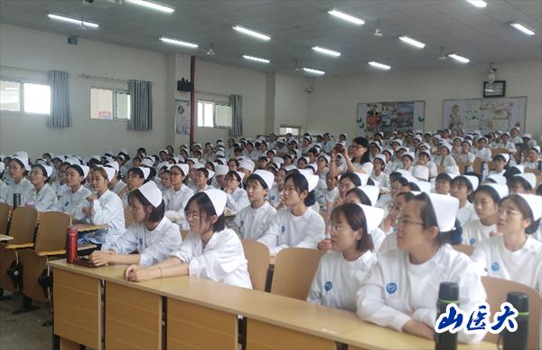 郭锦丽从护生职业生涯规划、实习生礼仪、实习生注意事项三大方面进行了生动丰富的动员讲座。她做为山西省杰出护理专家,以现身说法启发同学们正确认识职业,认真做好职业选择,合理做好职业规划。动员讲座中,她将一个个真实的临床案例再现,进行了深入的剖析,每一个案例都反应实习过程中可能会发生的种种客观、真实的状况,涉及到的实习期间的生活、学习、职业防护等方方面面的情景,让同学们提前对实习生活有了感性和理性的认识,不仅让同学们对实习生活充满了憧憬也对容易忽略和出现差错的问题引起足够的重视,郭主任利用三个小时给同学们做了一次深刻的恰到好处的实习导入。她提醒同学们实习中应秉承"细心大于耐心"的护理职业精神,遵守纪律,严于律己,带着憧憬、带着自律、带着心中希望的种子在护理职业道路上开始大胆探索与前进。