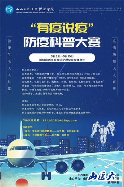 举国同心并肩战疫的伟大精神是医学教育立德树人的最佳教材。学院充分利用专业特色,引导学生从身边教师战疫的真实事迹中感受精神力量,汲取前进力量,发挥自己的知识特长,开展“我的抗疫故事征集”“我的口罩我做主”“山医春之舞”“‘有疫说疫’防疫科普大赛”等多项活动,在一笔一画设计中、一字一句撰写中、一姿一势舞动中体验战疫的艰辛,树立“疫情防控,从我做起”的使命意识。
