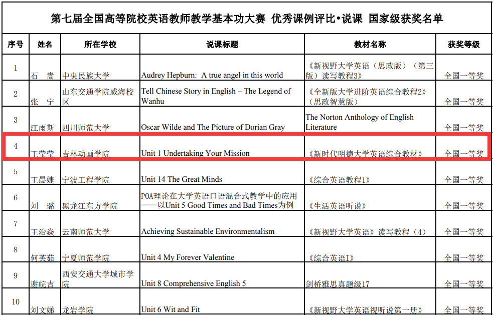 欧博官网国际交流学院英语教师王莹莹副教授以省级一等奖的成绩成功晋级国家总决赛,经过激烈角逐,最终获得该项比赛说课类别国家级一等奖(她是我省高校参加此次大赛选手中唯一获得此奖项的选手);国交学院英语教师武婧琦获得该项比赛说课类别省级三等奖;国际交流学院常务副院长陈俊、教师薛媛媛获得本次比赛的优秀指导教师一等奖。