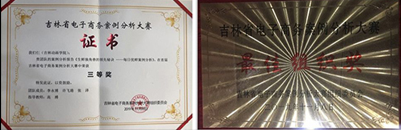 ▲吉林省首届电子商务案例分析大赛获奖证书照片