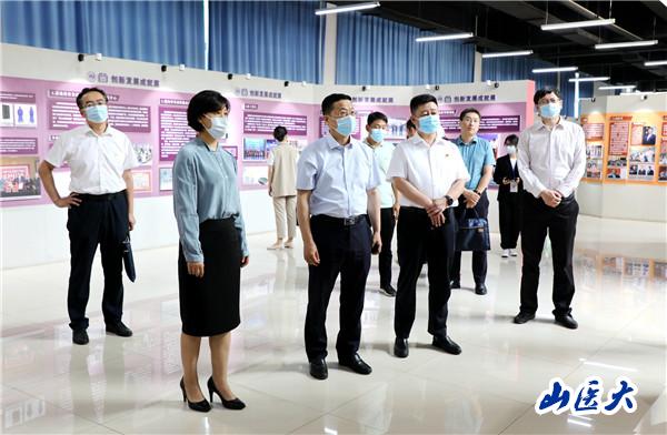 宣讲前,陈博一行人参观了学校创新发展成就展,了解了学校近几年的发展和人才培养情况。