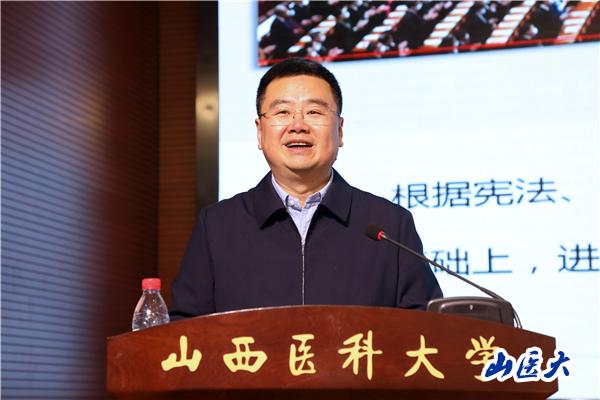 会上,解军传达了十四届全国人大一次会议基本情况、习近平总书记在大会期间的重要讲话精神、各项报告和其他议程的主要精神、山西代表团活动情况,并介绍了自己的履职情况与参会体会。他指出,2023年全国两会是在深入学习贯彻党的二十大精神的开局之年、全面建设社会主义现代化国家起步的关键之年召开的一次举世瞩目的盛会。习近平总书记全票当选国家主席、中央军委主席,充分彰显了全党全军全国各族人民对习近平总书记的衷心拥护和崇敬爱戴,为全面建设社会主义现代化国家、全面推进中华民族伟大复兴筑牢了政治根基和组织根基。习近平总书记在全国两会期间发表一系列重要讲话,提出了许多重大理念、重大论断、重大部署,具有很强的政治性、思想性、理论性、指导性,为我们奋力推进中国式现代化进一步指明了方向,为我们做好当前和今后一个时期的工作提供了行动指南和根本遵循。我们要深入学习贯彻党的二十大精神、全国两会精神,瞄准全国一流研究应用型医科大学建设目标,把全国两会精神落实到学校当前工作中。
