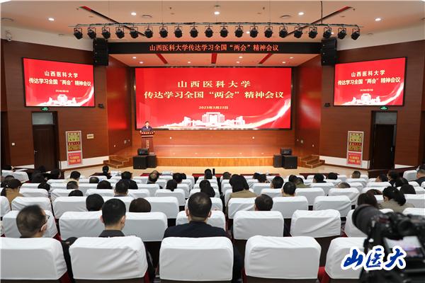 王宏伟在主持会议时指出,今年的全国两会,非同寻常、举国关切、举世瞩目。学习贯彻好全国两会精神,对于做好学校今年的各项工作,具有重要而深远的意义。就学习宣传贯彻全国两会精神,他提出三点意见:一是提高政治站位抓领悟。要充分认识全国两会取得的丰硕成果,深刻领悟“两个确立”的决定性意义,坚决做到“两个维护”,不折不扣推动党中央、省委决策部署在学校落地生根、开花结果。二是突出全面把握抓学习。要把学习贯彻全国两会精神作为当前一项重大政治任务,学深悟透习近平总书记重要讲话和全国两会精神,凝聚思想共识,奋进新征程、建功新时代。要把学习贯彻全国两会精神与学习贯彻党的二十大精神结合起来,与学习贯彻习近平总书记考察调研山西重要讲话重要指示精神结合起来,一体学习领会、一体贯彻落实。三是锚定战略定位抓落实。对标对表全国两会部署要求,结合学校实际精准对接、精准发力、精准落地,在推动高质量发展上敢于立潮头、勇于先突破、善于闯新路,努力开辟发展新领域新赛道、塑造发展新动能新优势,朝着全国一流研究应用型医科大学建设目标踔厉奋发、阔步前进!