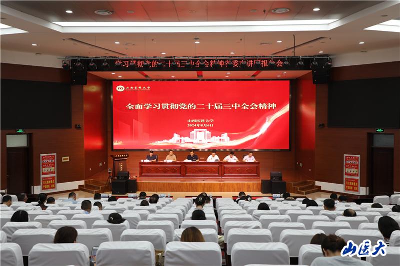 报告会结束后,校党委书记王军就深入推进学习贯彻党的二十届三中全会精神作了强调部署。他指出,党的二十届三中全会是在以中国式现代化全面推进强国建设、民族复兴伟业的关键时期召开的一次十分重要的会议,是新的历史起点上进一步全面深化改革、推进中国式现代化的总动员、总部署。我们必须把全会精神学习好、领会好、贯彻好。一要坚定政治自觉,全面系统学习党的二十届三中全会精神。全校上下要深刻认识党的二十届三中全会的重大意义,深刻领会把握习近平总书记关于全面深化改革的一系列新思想、新观点、新论断,深刻领会把握进一步全面深化改革的主题、重大原则、重大举措、根本保证,准确把握其核心要义、丰富内涵和实践要求,切实把思想和行动统一到全会精神上来,切实增强进一步全面深化改革、推进中国式现代化的政治自觉、思想自觉和行动自觉,不断谱写学校高质量发展新篇章。二要注重研究阐释,把学习宣传党的二十届三中全会精神引向深入。充分发挥平台优势、学科优势、人才优势,对全会精神进行体系化研究和理论性阐释,帮助党员干部和师生群众更好理解把握全会精神。按照有关要求,深入开展面向基层、面向师生医护员工的宣讲,通过理论学习中心组、“三会一课”、主题党日等形式,开展好集中学习、个人自学、交流研讨,不断激发广大党员干部、师生群众干事创业的热情,以强烈的责任担当贯彻落实好全会精神。三要聚焦高质量发展,以钉钉子精神抓好各项改革任务的落实。提高站位抓改革落实,把学校改革发展放到中国式现代化这个最大的政治中,以更高站位、更宽视野、更大格局去谋划和推进各项工作。系统集成抓改革落实,始终认清楚、把握好“稳”与“进”、“立”与“破”、“质”与“量”,集成推进学科建设、科学研究、人才队伍、绩效评价、资源配置等改革。把握重点抓改革落实,突出抓好有组织的科研改革,不断深化治理体系改革,持续完善分配制度配套改革,谋深谋实更多具有山医辨识度、标志性、影响力的重大改革举措,以实干实绩回应师生期盼、推动改革深化。