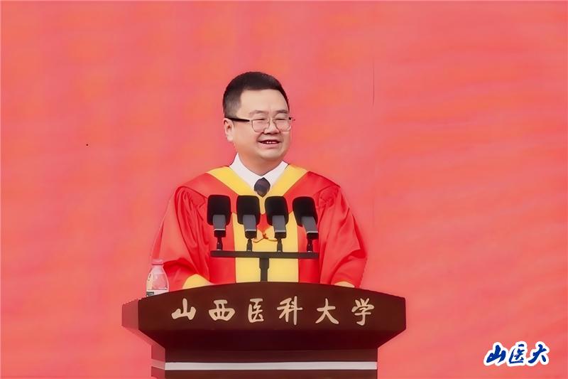 同学们,当你们手持镌刻校徽的学位证书,这不仅是个人奋斗的勋章,更是你们和学校共同成长的见证——这五年,你们在自习室里学习知识、追逐真理,母校也和你们一样共同成长。我们以同步奋进的姿态,共同书写了我们这代人无愧的山医篇章!
