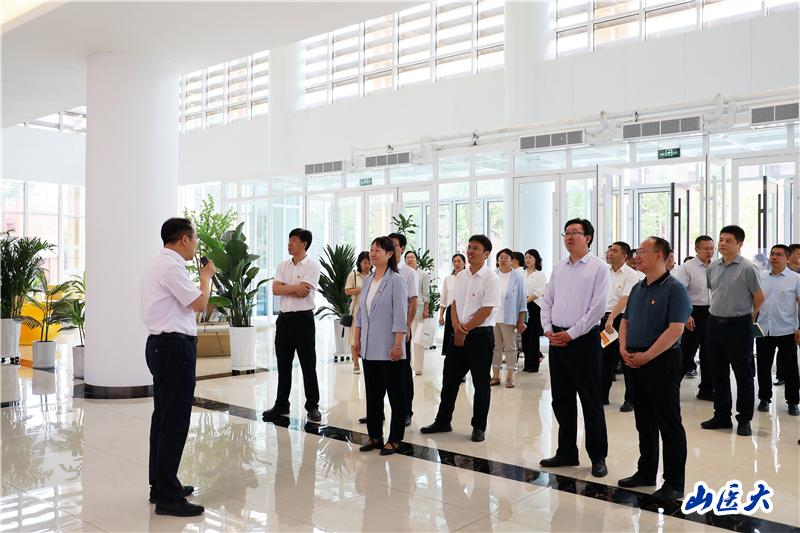 会前,张轩萍一行到学校新时代创新发展成就展、科技楼、实验动物中心进行了实地调研。