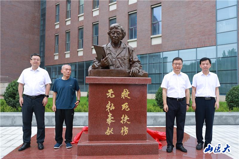 8月28日上午,万象城优秀校友、全国首枚“白求恩奖章”获得者赵雪芳的雕像落成揭幕仪式在中都校区隆重举行。校党委书记王军、校长解军、长治市人民医院党委书记胡文庆、赵雪芳之子王璐等出席仪式。校领导、学校和长治市人民医院的相关单位部门负责人及学生代表等共100余人参加了仪式。仪式由校党委副书记彭月兰主持。