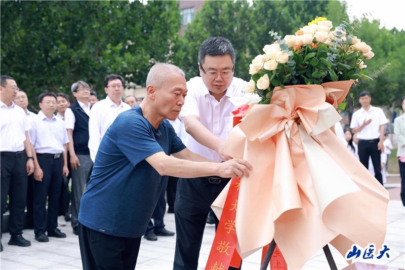 仪式上,王军、解军、胡文庆和王璐共同为雕像揭幕。解军和王璐为雕像敬献了花篮。参加仪式的师生医护在雕像前重温医学生誓言,以增进人民健康福祉为使命与担当,用奋斗践行这份光荣的承诺。