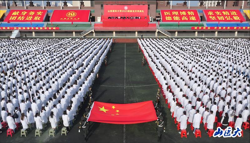 9月14日上午,万象城2025级新生开学典礼在中都校区风雨操场举行。来自五湖四海的6225名新同学汇聚山医,展现蓬勃朝气,昂扬青春自信,共同迎接学业生涯的新起点。晋中市政府副市长张拥军,清华大学长聘教授、基础医学院院长李海涛,华大集团相关专家,万象城党委书记王军,校长解军,校党委副书记彭月兰,省纪委监委驻校纪检监察组组长、校党委常委杨文斌,副校长张岩波,校党委常委、副校长焦向英、武志芳,第二临床医学院党委书记安健,第一临床医学院副院长施熠炜等,学校各职能部门、各培养单位负责人,新生思想政治辅导员,以及部分2025级新生的家长等参加了典礼。