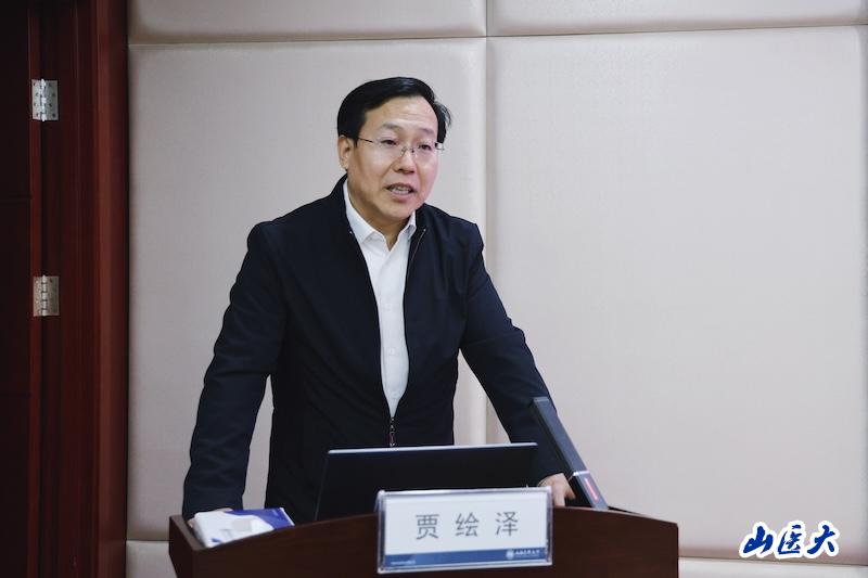 11月24日上午,学校“十五五”规划立德树人专题研讨会在中都校区教学办公楼五层会议室举行。会议特邀山西经济管理干部学院院长、教育部高校思政工作中青骨干人才、新时代教育部“马工程”重点教材专家、教育部高校思政课教学指导委员会委员贾绘泽教授作专题辅导。校党委副书记彭月兰,学校各部门、单位负责人,各院系党组织书记、院长,附属第一医院、第二医院宣传部部长,各院系宣传员、理论学习秘书,以及网络中心和宣传部的工作人员等参会。校党委常委、宣传部部长侯小宝主持会议。