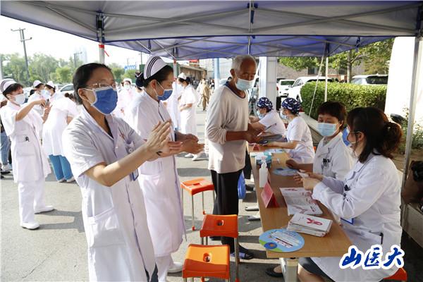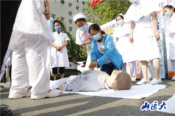 活动紧紧围绕“喜迎二十大,奋进新征程”的主题展开。活动现场,消毒供应中心的南丁格尔志愿服务队开展了“成人心肺复苏术”的现场急救培训,宣传普及基础急救知识,教会群众自救互救技能,赢得抢救生命的黄金时间,加强了对心肺复苏的知识。感染管理科为现场群众讲解了常态化疫情防控措施,使群众认识到人人都是常态化疫情防控的责任主体,并指导使用七步洗手法口诀正确洗手及正确佩戴口罩,养成健康的生活方式。护理部、医务处、质控部进行了科普知识宣教,内容涵盖慢病管理、静脉治疗、艾滋病预防等咨询服务。
