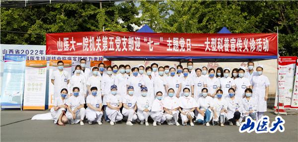 6月30日,第一医院机关第五党支部在医院东门举办了迎“七一”主题党日活动。第五党支部所辖医务处、护理部、感染管理科、消毒供应中心、质控部的42名党员和职工参加了活动。