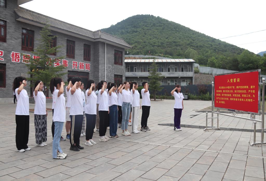 随后,队员中学生党员和预备党员在西沟展览馆前重温入党誓词,姚晓莉领誓。在党的生日之际,在西沟乡这个申纪兰“战斗过”的地方,同学们庄严举起右拳,庄严宣誓,表达着继承先辈遗志、积极投身中华民族伟大复兴的豪迈激情。
