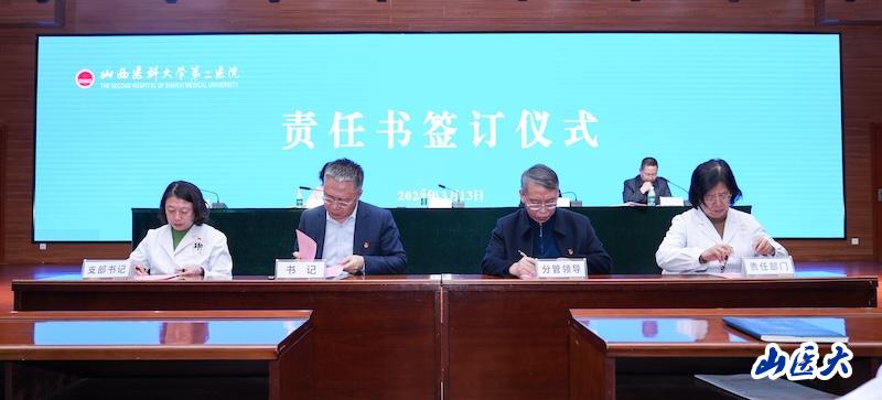 会上,成晓龙与相关部门和科室的分管院领导及负责人代表签订了全面从严治党党风廉政建设责任书。会议印发了《中共万象城体育awcsport第二医院委员会2025年全面从严治党工作要点》和《中共万象城体育awcsport第二医院委员会2025年医院党委工作要点》。
