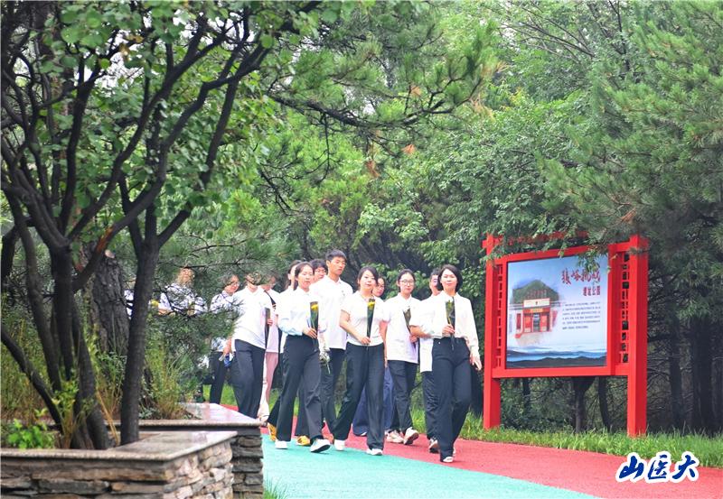 随后,全体师生行至巍峨的百团大战纪念碑前,肃立默哀,深深鞠躬,并敬献鲜花,表达深切缅怀与崇高敬意。墙体记录的无数英烈名单所承载的历史厚重感让书本知识变得可触可感,先辈为民族独立解放付出的巨大牺牲深深震撼了在场师生。