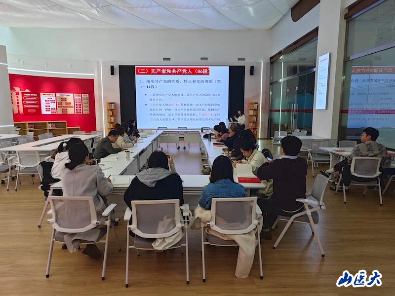 尹俊芳通过对历史的回顾系统介绍了《共产党宣言》诞生的时代背景和历史必然性,在逐一分析文本结构和主要内容中详细阐述了《共产党宣言》的基本思想和基本原理,并结合新时代的伟大实践深入解读了《共产党宣言》所蕴含的与时俱进理论品格及其当代价值。整场报告内容丰富、逻辑严密、解读深刻,对青年教师更好地读原著学原文悟原理,掌握马克思主义立场观点方法有很强的指导性。